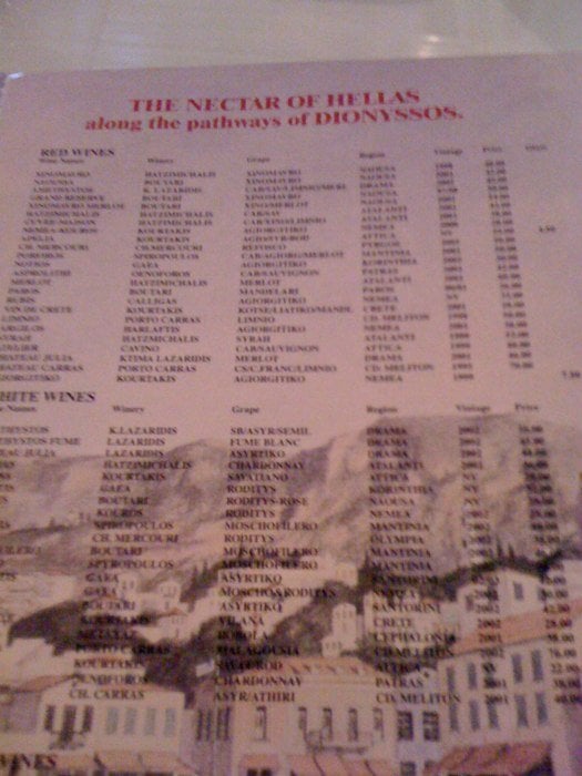 Taramosalata, melintzano Salata, tzatziki, houmous, dolmathes, feta cheese, fascia, Kalamata olives, and red sweet onion.